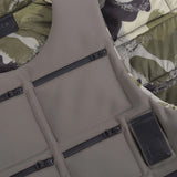 10 Pockets Reversible Vest by Letasca in grey/camo, reversible sleeveless with military camo, features a zip closure, eight front pockets and one on the back