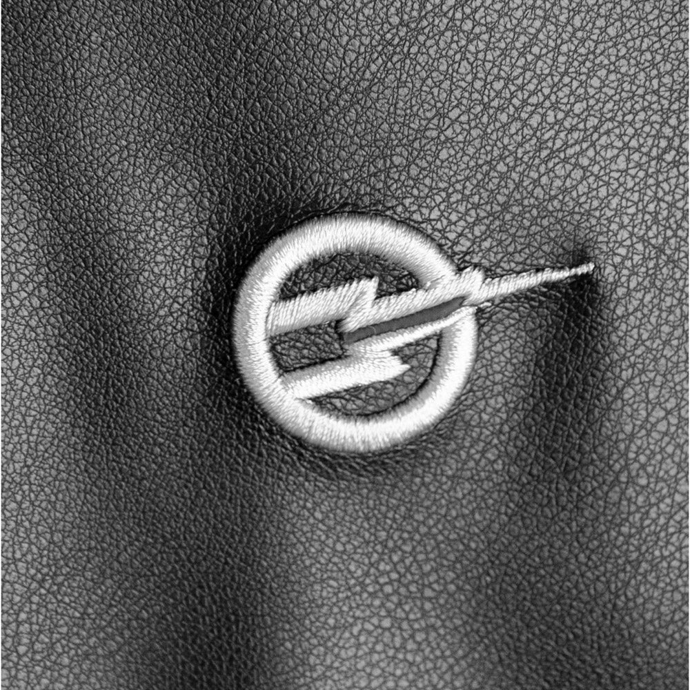 Sweet Dreams Jacket by Formy Studio in black, made of leather with a two-tone tone-on-tone design, appliqué details, classic button closure collar and embroidered logo heart height